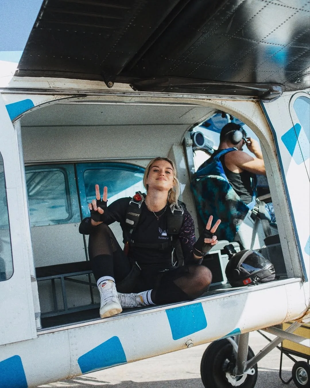 A 28-year-old French creative based in Paris, she’s built her life around curiosity, community, and actually doing the things most people just talk about. What started as a personal skydiving dare quickly turned into something much bigger, a full-blown obsession and one of the most collective, life-affirming experiences she’s had.